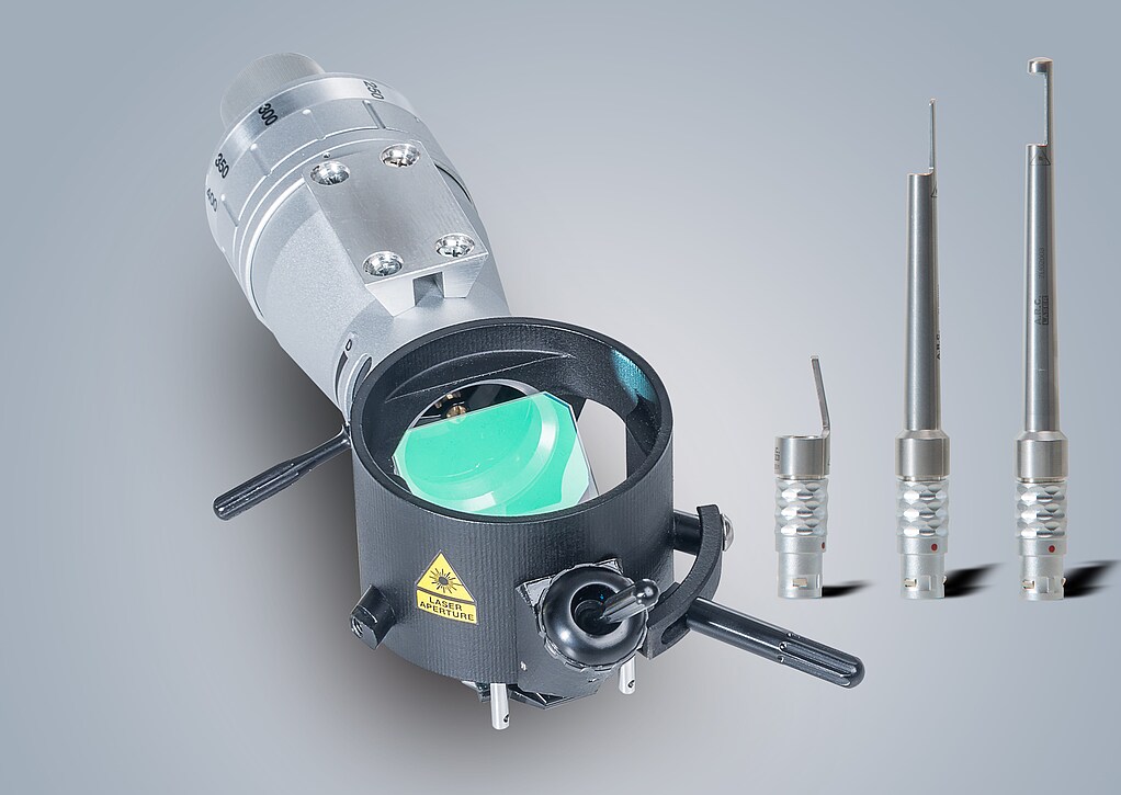 Our high precision C-Pro micromanipulator with a spot diameter of only 100 µm is the best choice for optimal results. Adaptable to all common microscopes, the C-Pro offers a precise, continuous adjustment of the working distance between 200-500mm. With the focus and defocus lever it is possible to intuitively change the spot diameter between cutting and coagulation by increasing or decreasing the spot diameter without having to take a look from the surgical field. Hand-held, the C-Las with its articulated arm and handpiece makes a good figure in your operating room as well.