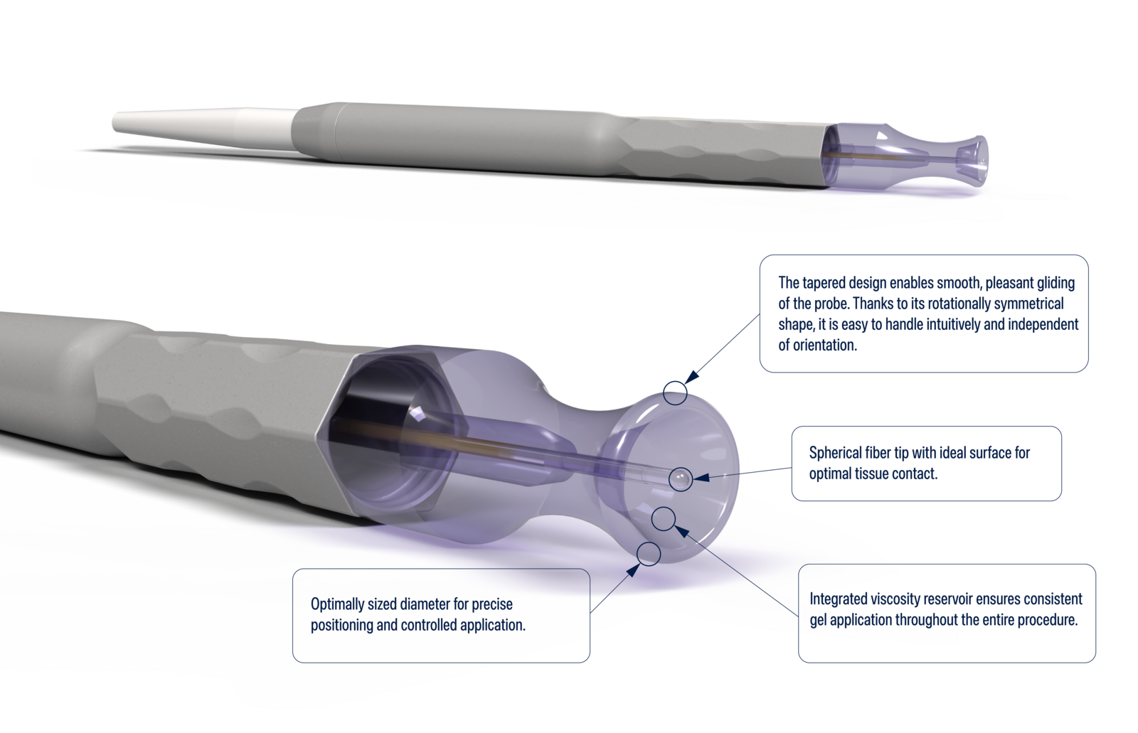 Unlike conventional probes, the μCPC probe allows comfortable handling without any need for orientation — a significant advantage in clinical applications. As simple as using a pen.